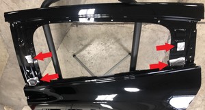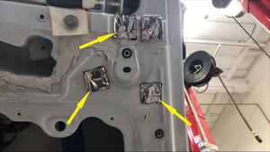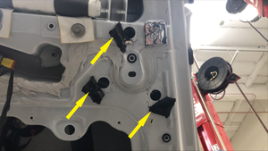 Note4x clips, Carefully release clips and double-sided tape that secure rear wheel arch to rear door assembly