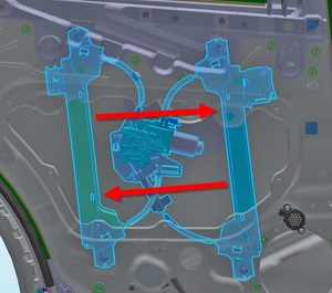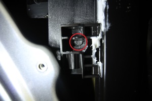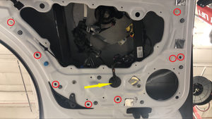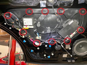 Note1x nut, 10mm, 9 Nm, Nut does not need to be fully removed, If required power the vehicle back on and use the window switch tool to move regulator for nut access