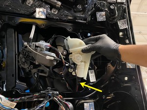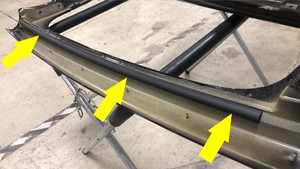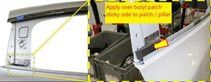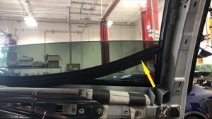 - Apply P-80 Emulsion Grease onto seals attached to LH rear door fixed glass for easier installation