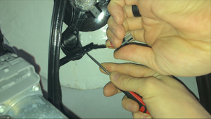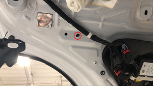 Note1x grommet, Route harness into LH falcon door and secure harness grommet