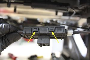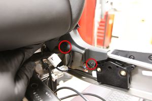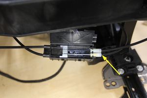 - Secure the black connectors (x2) to the LH 2nd row seat frame, and then connect the electrical connectors (x4).