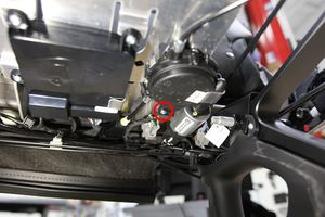 - Position the bracket into the seat assembly, and then secure the tabs (x2) that attach the actuator bracket to the seat assembly.
