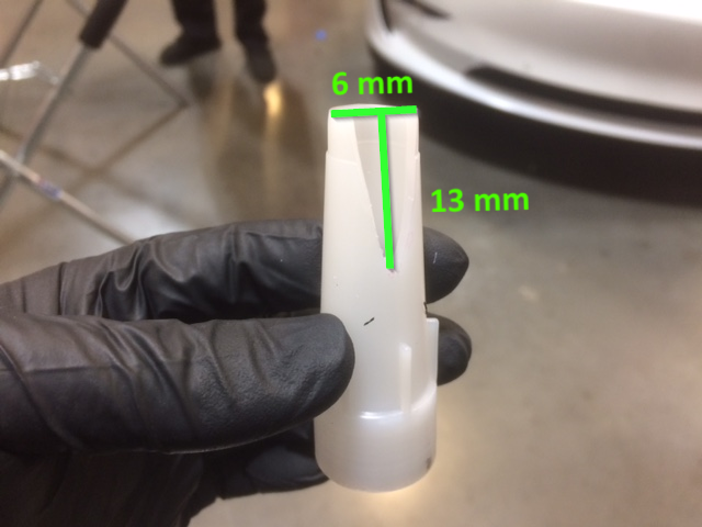 - Cut the urethane applicator tip 6 mm wide by 13 mm long.