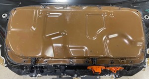 Clean sealing surface of HV battery front access panel.