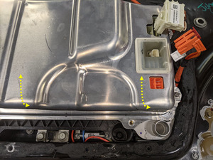 - Remove front access cover from HV battery.