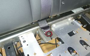 Remove and discard the bolt that attaches the center 2nd row seatbelt to the seat frame.