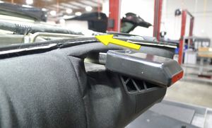 Apply masking tape to the LH and RH racetrack trims to avoid damage.
