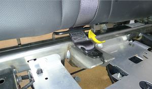 - Feed the LH 2nd row seat outer and center seat belts through the seat cushion pass through.
