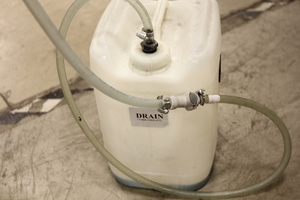 16. Remove the coolant cart drain hose from the coolant drain container.