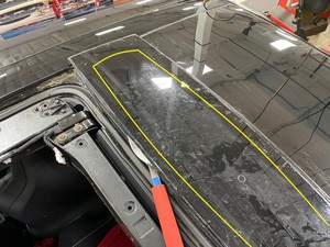 - Apply primer onto the roof and the center spine applique carrier following the urethane path.