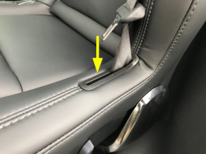 LH 2nd row seatbelt anchor escutcheon, and then route the seat belt harness through the