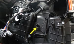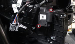 Remove the screws (x2) that attach the HVAC case 1st row bypass actuator to the HVAC assembly, and then remove the actuator from the vehicle.