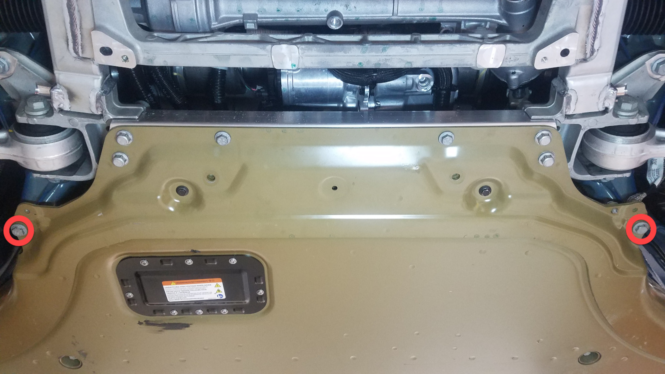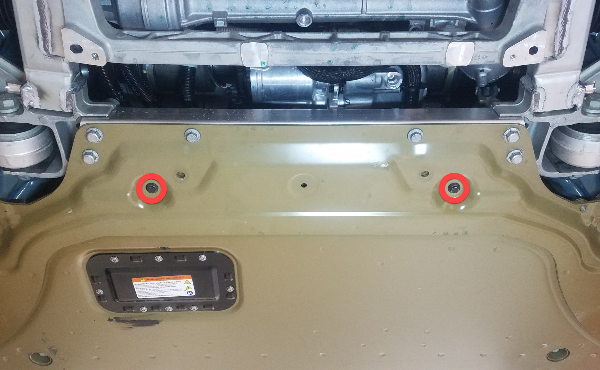 - Remove bolts (x2) that attach the front skid plate to the LH and RH body sills.