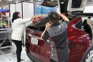 With assistance, attach the suction cups to the backlight glass, and then carefully install the glass on the liftgate.