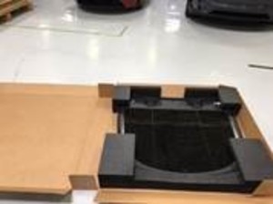 With assistance, remove the new backlight glass from the packaging, and then place the glass on a portable bench.