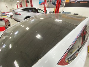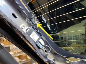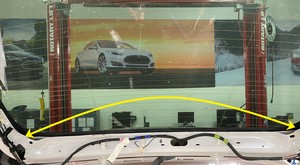 Apply masking tape on the backlight glass and the liftgate while the urethane cures.
