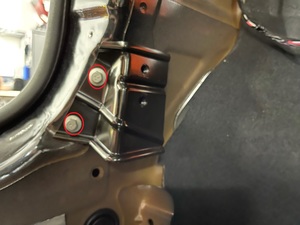 - Install the LH rear trunk tie down ring that attaches the side trim carpet to the tie down.