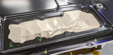 NoteMake sure that the mica panel is completely tucked behind the HV battery top cover sheet metal.NoteIt may be necessary to crease the panel to install it into the opening.