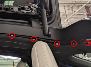 - Install the clips (x8) that attach the LH headliner to the vehicle.