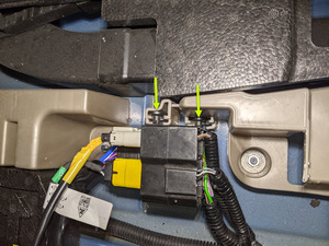 Install the tabs (x2) that attach the RH 2nd row floor panel bracket inline harness to the bracket.