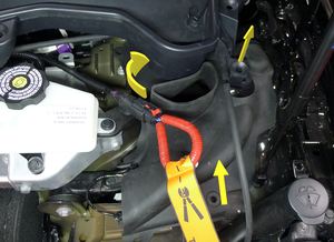 - Release the clip that attaches the LH speed sensor harness to the vehicle.