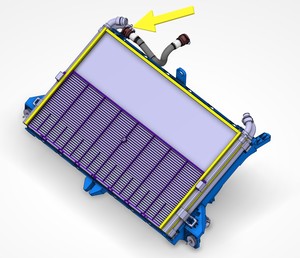 the radiator outlet hose to the supermanifold, then fasten the clip.