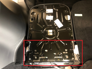 - Engage the tabs (x4), fir tree clips (x2), and J hook that attach the lower section of the LH 3rd row seat upholstery to the seat.