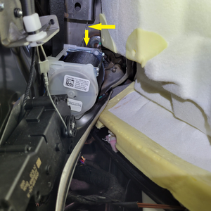 From the 3rd row, pull the inner portion of the seat cover and foam outward to gain access to the LH 3rd row headrest actuator.