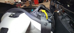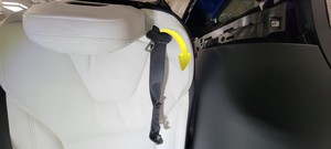 - Feed the LH 3rd row seatbelt between the top of the LH 3rd row seat back panel and the seat frame.