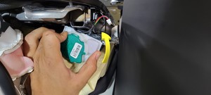 - Route the LH 3rd row seat connectors (x2) around the lower section of the upholstery, and then connect the connectors.
