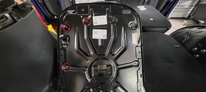 Install the push clips (x4) that attach the 3rd row seat harness trays to the seat frame.