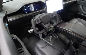 - Remove brake pedal depressor, steering wheel level, and steering wheel holder and place vehicle into Park.