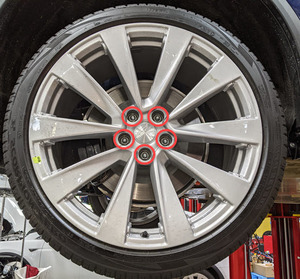 Note5x nuts, 21mm, 175 Nm, Start lug nuts by hand before using power tool.