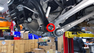 Secure LH rear stabar link to stabar assembly.