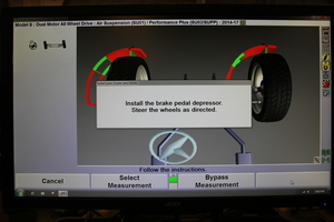 Set vehicle ride height to Standard, then drive vehicle onto alignment rack and shift