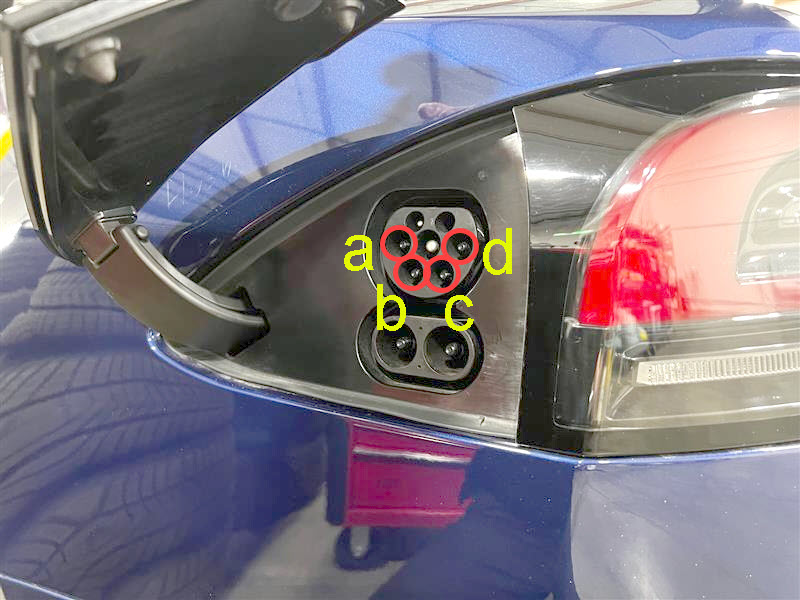 at the lower 4 terminals of the charge port AC connector.