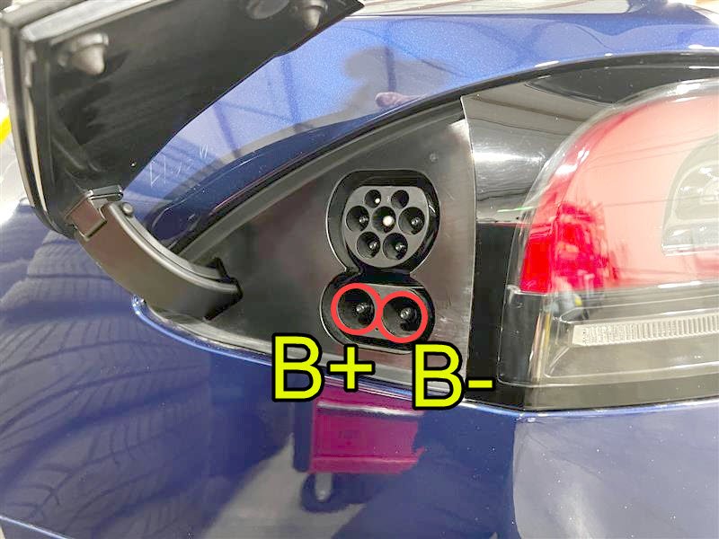 at charge port terminals B+ and B-.