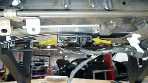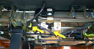- Connect the LH 2nd row seat assembly electrical connectors (x5), and then secure the clips (x2) that attach the black connectors the LH 2nd row seat frame.