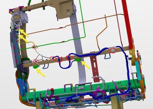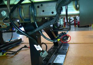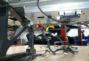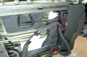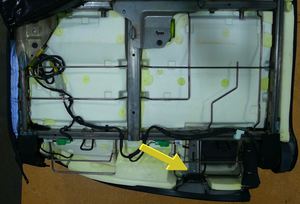 - Position the LH 2nd row seat assembly harness into the LH 2nd row seat assembly, maneuver the harness between the seat assembly brackets, and then secure the clip that attaches the harness to the assembly.