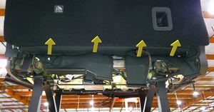 - Secure the clips (x5) that attach the LH 2nd row seat assembly harness to the seat cushion support assembly.