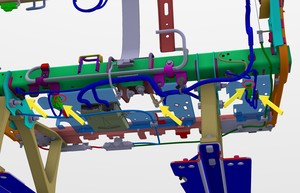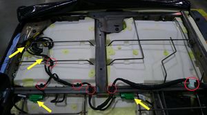 - Release the clips (x5) that attach the LH 2nd row seat assembly harness to the seat cushion support assembly.