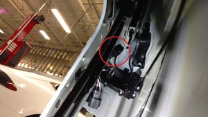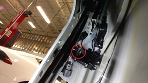 - Release the fir tree clip that attaches the cables to the LH front door.