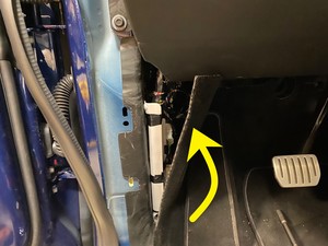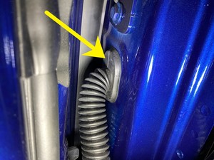 - Secure the clip that attaches the LH front door harness to the base of the door.