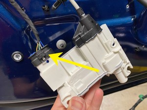 - Disconnect the LH front door cinch motor electrical connector.