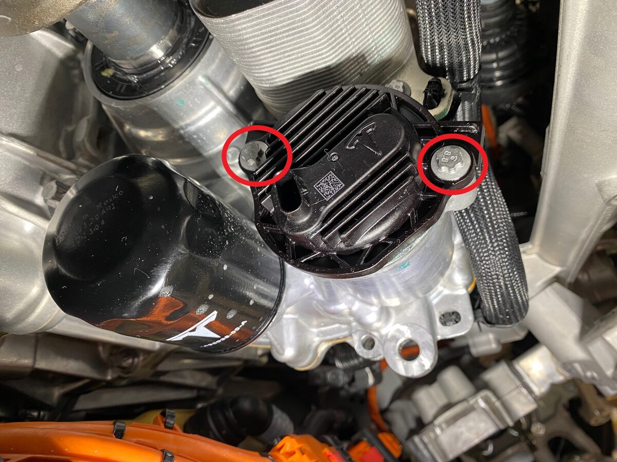 NoteMake sure that the O-ring is on the fill plug, the 3 O-rings are on the oil pump, and no O-rings are stuck in the front drive unit assembly.NoteIf an O-ring is damaged on the oil pump, install a new O-ring.NoteIf the O-ring is damaged on the fill plug, install a new fill plug or O-ring.NoteIf the oil filter was removed, check that the seal is on the oil filter and not on the front drive unit assembly.