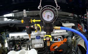 Connect shop air supply to coolant refill tool