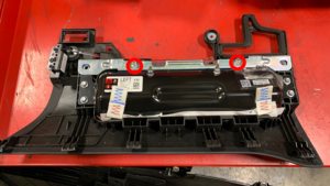 Position the driver knee airbag cover onto the driver knee airbag, and then install new bolts (x4) that attach the cover to the airbag.