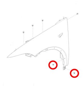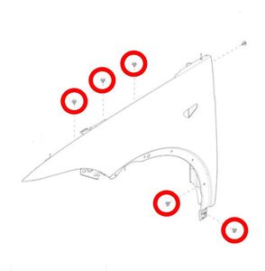 Notex6 bolts, 10 mm, torque 12 Nm.Notex1 bolt, 10 mm, torque 8 Nm.NoteT25, torque 2 NmNoteThe rear upper fender mounting bolt will be installed later in this procedure.