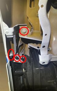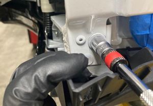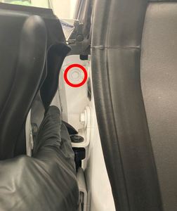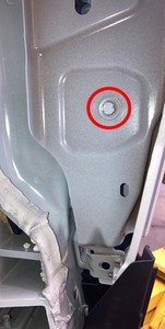 Note10 mm. Torque 12 Nm.NotePerform this step before positioning the vehicle on the lift as the LH front door should be fully open to access the bolt.NoteAccess the bolt from vehicle interior-side of the door while holding back the door seal.
