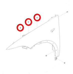 NoteT25. 10 mm.NoteDo not fully tighten the fasteners until all fasteners have been installed and fender gap/flushness have been checked.NoteMake sure the locking tabs are locked in place.